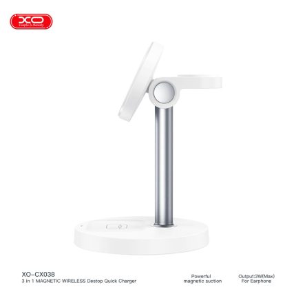 XO CX038 DESKTOP HOLDER 15W ΑΣΥΡΜΑΤΟΣ ΦΟΡΤΙΣΤΗΣ 3-IN-1, ΛΕΥΚΟΣ
