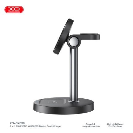 XO CX038 DESKTOP HOLDER 15W ΑΣΥΡΜΑΤΟΣ ΦΟΡΤΙΣΤΗΣ 3-IN-1, ΜΑΥΡΟΣ