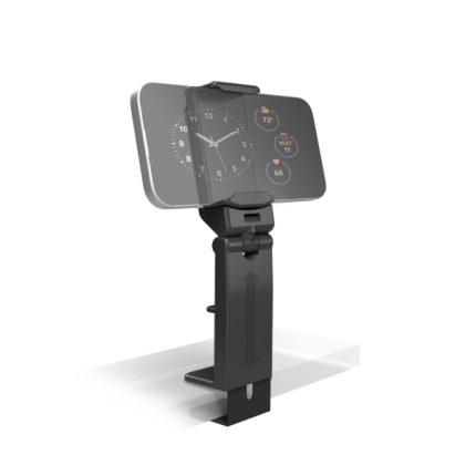 Description Attach your phone to seats and laptops: perfect for work and travel This holder allows you to secure your Samsung, Apple, Xiaomi, Oppo, Huawei, and many other phones to the backseat of a car, an airplane seat, the edge of a laptop, or on a desk surface. This way, you can enjoy movies and TV shows with maximum comfort during long flights or keep your phone easily accessible while working on your laptop. The clamp for attachment expands up to 35mm, making it suitable for most surfaces. Easy to apply It features an additional clip that securely holds the phone. Thanks to the adjustable arms, you can adapt the clip to fit smartphones with a maximum width of 90mm. Opening and closing the grip is very simple and does not damage your phone’s casing in any way. Adjustable and rotatable The phone clamp is tiltable and rotatable to your liking. You decide the orientation of your smartphone: vertical or horizontal for maximum viewing comfort. You can also tilt it to