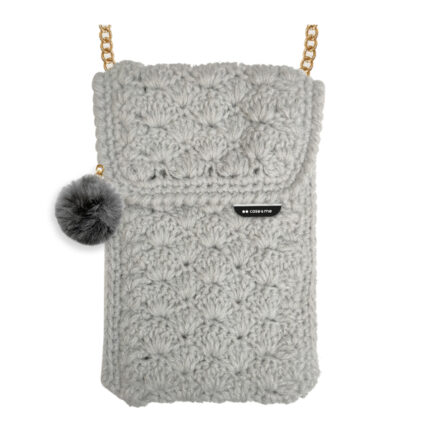 This soft winter handbag is designed to carry a phone up to 6.8" in a truly comfortable way. The practical 120cm gold shoulder strap makes carrying easy and safe. Put it back inside and close the flap to protect it from the cold winter days, as well as from knocks and scratches. There's a faux fur pompom on top with a gold keyring. You can take it off and use it as an accessory by attaching it to a backpack or you can use it as a keyring.The knitted design has an eye-catching, on-trend winter pattern and border. This accessory is fashionable and functional, perfect for expressing yourself and your unique style. Features: * for phones up to 6.8" * typical winter style with knitted design * 120cm long gold shoulder strap * faux fur pompom that turns into a keyring * material: 60% cotton - 40% acrylic * size: 110x170cm