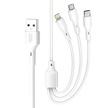 Introducing the XO-NB230 One for Three multi-functional charging cable. This versatile cable supports fast charging, accommodating USB-A to Micro (2.0A), Lightning (2.4A), and TYPE-C (2.4A) connections for single use. For simultaneous use, it can handle up to 3.0A maximum output. Available in sleek black or white, this cable is designed for convenience and reliability. Perfect for all your charging needs, the XO-NB230 One for Three cable is a must-have accessory.