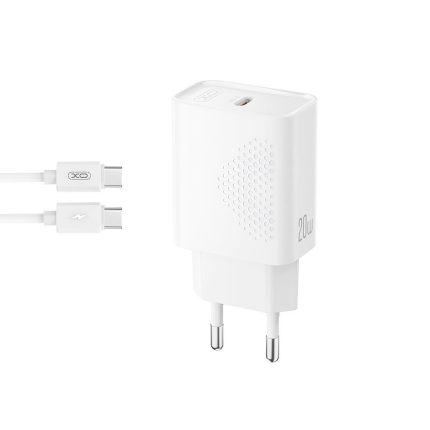 XO TRAVEL CHARGER CE15 PD 20W+ DATA CABLE TYPE C TO TYPE C white