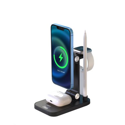 TK-23 Magnetic four-in-one (κινητό τηλέφωνο 15W/ακουστικά 5W/ρολόι 2,5W/χωρητικό στυλό 2W)Πρότυπο εφαρμογής ασύρματης φόρτισης: WPC-Qi V1.2.4Είσοδος: 9V-2A ή παραπάνω (αναγνώριση/προσαρμογέας QC3.0/PD)Ισχύς εξόδου Έξοδος ασύρματης φόρτισης TX-1 (φόρτιση κινητών τηλεφώνων): (συμβατή με γρήγορη ασύρματη φόρτιση 7,5 W για κινητά τηλέφωνα της σειράς IPHONE12 έως IPHONE13 και ασύρματη φόρτιση για άλλα κινητά τηλέφωνα και συσκευές που υποστηρίζουν το πρωτόκολλο ασύρματης φόρτισης QI (15W, 10W , 7,5W, 5W) ).Έξοδος ασύρματης φόρτισης TX-2 (ακουστικό φόρτισης): (5W) μέγΈξοδος ασύρματης φόρτισης TX-3 (ρολόι φόρτισης): (2,5W) μέγΈξοδος χωρητικής πένας TX-3: 2W maxΣυνολική ισχύς: 15WΑποδοτικότητα μετατροπής TX-1: 78% μέγΣυχνότητα φόρτισης 110-205 kHZΟθόνη: σταθερή ισχύς πρώτης οθόνηςΗ απόσταση φόρτισης TX-1 ειναι: 3 - 5mmΔιεπαφή εισόδου: TYPE C θηλυκόΥλικό: Abs+pc