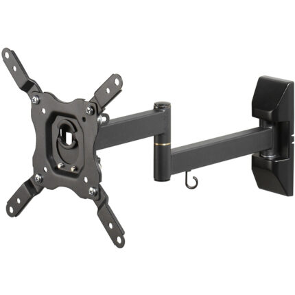 * Full Motion TV wall bracket for small & medium sized TVs up to 109 cm / 43'' * 2 arms / 3 hinges * Tilt and swing * Flat profile and long max wall distance * Horizontal level correction * Robust steel construction * Quick & easy installation * Smooth motion * Cable management * For screen sizes up to 109cm / 43'' * VESA 75*75 to 200*200 * Wall distance 58 to 423mm * Max +/- 90° swing radius (max radius for screen width smaller 846mm only) * Stepless tilt adjustment +5° / -15° * Horizontal level correction +/- 6° * Max weight load: 25kg * Weight of the bracket just 1,5kg * Colour: black
