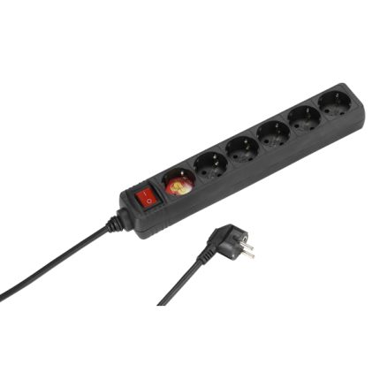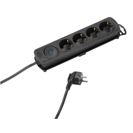 * Five socket extension lead with switch * 5x Schuko with switch * Core thickness 1.5mm² * Sockets angled at 45° * Virtually unbreakable housing * Children security * Color: black * Length: 1.4 m