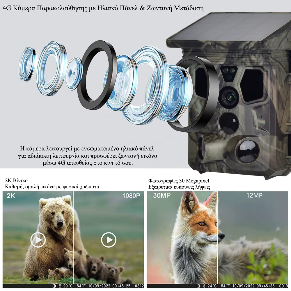 【Ηλιακή επαναφορτιζόμενη κάμερα】: Η ηλιακή κάμερα T300 είναι ένας συνδυασμός κάμερας παιχνιδιού και ηλιακού πάνελ, που αποτελεί επαναστατική καινοτομία και βελτίωση. Αυτή είναι η ίδια η πρώτη trail κάμερα που μπορεί να φορτιστεί με ηλιακή ενέργεια. Η κάμερα διαθέτει μια ενσωματωμένη μπαταρία 4400mAh, ανθεκτική σε χαμηλή θερμοκρασία, η οποία μπορεί να αποθηκεύσει την ηλιακή ενέργεια που μετατρέπεται σε ηλεκτρική ενέργεια για συνεχή τροφοδοσία της κάμερας, εξοικονομώντας πολλές μπαταρίες.