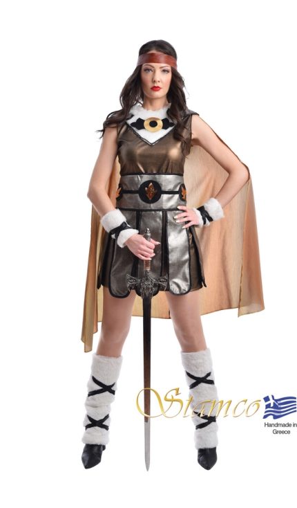 Αποκριάτικη στολή Πολεμιστής που αποτελείται από: μπλούζα, παντελόνι, μπέρτα, ζώνη, γκέτες, λωρίδα κεφαλής Παράγεται σε "one size" μέγεθος που αντιστοιχεί σε μεγέθη ενηλίκων Μ / L / XL