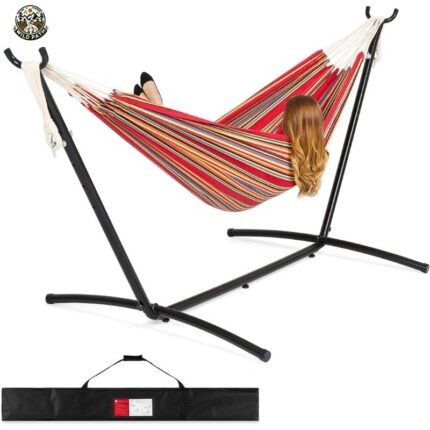 Wild Path Υπέρδιπλη Αιώρα με Μεταλλική Βάση Υφασμάτινη 250x165cm Red