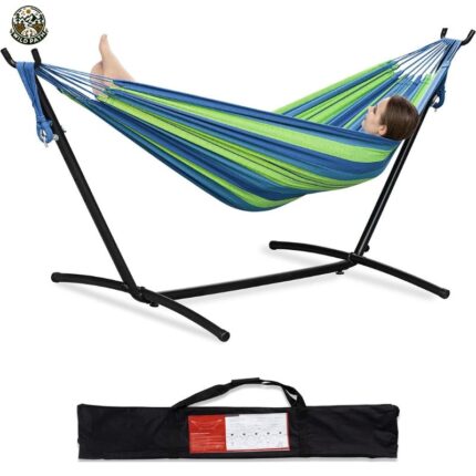 Η Wild Path Υπέρδιπλη Αιώρα με Μεταλλική Βάση είναι ιδανική για άνετες στιγμές χαλάρωσης στον κήπο ή τη βεράντα. Φτιαγμένη από ανθεκτικό βαμβακερό υλικό, προσφέρει μέγιστη άνεση και αντοχή. Η σταθερή μεταλλική της βάση εξασφαλίζει ασφάλεια και ευκολία στη χρήση, καθώς συναρμολογείται εύκολα χωρίς εργαλεία.