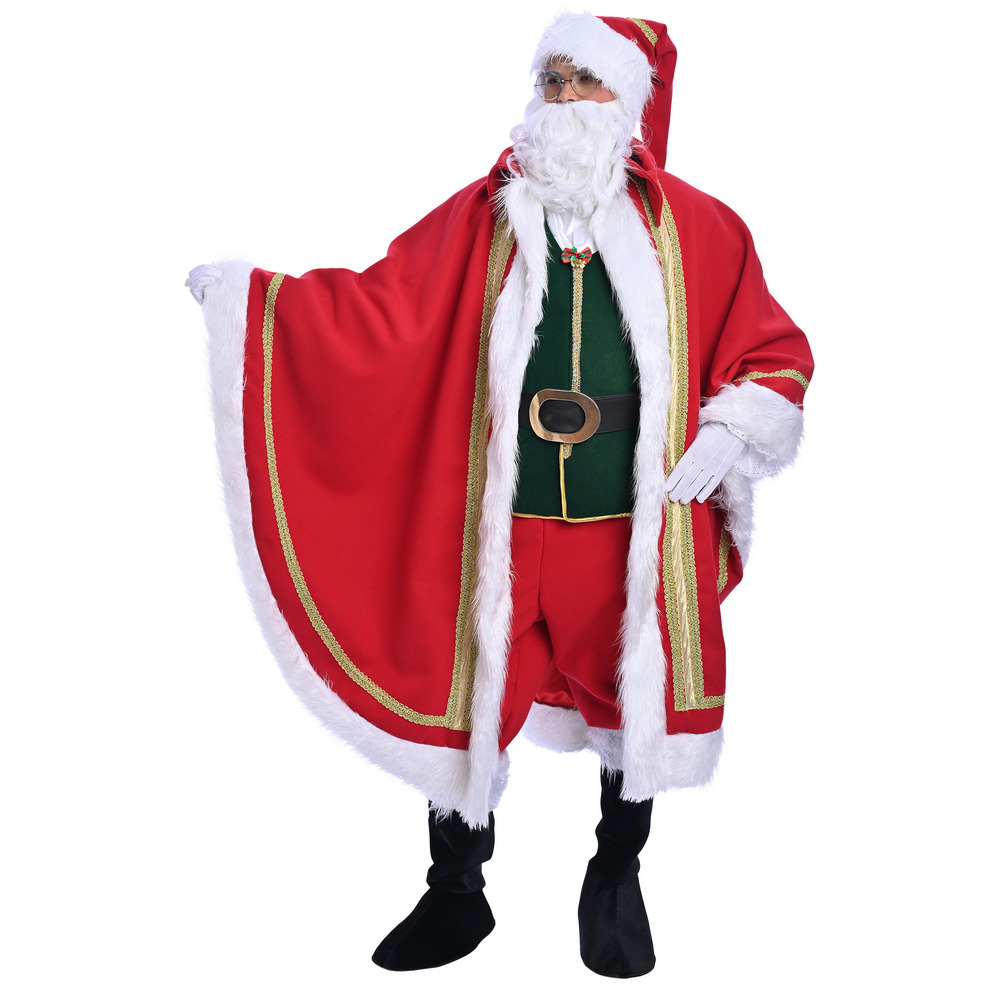 Χριστουγεννιάτικη στολή που αποτελείται από: Κάπα, Γιλέκο, Παντελόνι, Καπέλο, Ζώνη και Καλύμματα για τις Μπότες. Η Κάπα, το Παντελόνι και το Καπέλο είναι φτιαγμένα από κόκκινη Τσόχα υψηλής ποιότητας, διακοσμημένα με μακριά λευκή Γούνα. Το Γιλέκο είναι από