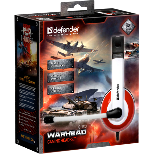 DEFENDER G-120 WARHEAD WIRED HEADPHONES 2m red white