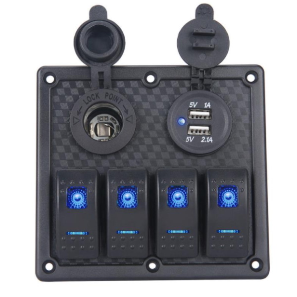 Kewig SP12 Πάνελ με 4 Αδιάβροχους Διακόπτες, Αναπτήρα, 2 X USB (Θαλάσσια Σκάφη/Αυτοκίνητα/Τρακτέρ)