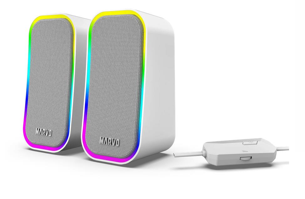 Two modes with 2.0 speakerWired speakerVolume RGB 5 lighting modesHandy volume knobBacklight: 6 modes with touch controlSpeaker RMS:3W*2size: 15.7*8*6CMFrequency: 150 Hz – 20KHzConnectors: DC 5V