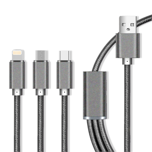 MAXLIFE USB TO MICRO USB | TYPE C | LIGHTNING DATA CABLE 1m 2.1A grey
