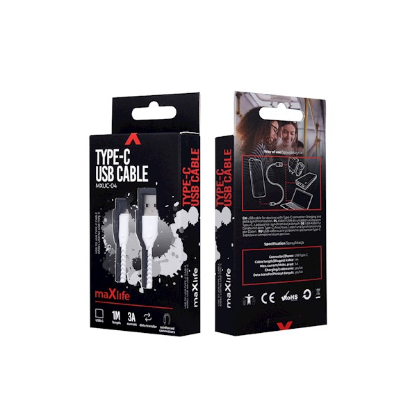 MAXLIFE USB TO TYPE C DATA CABLE 1m 3A white