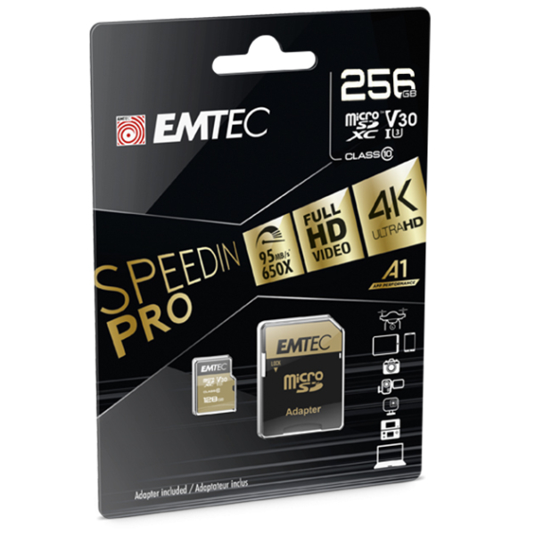 Memory Card microSD EMTEC USH-I U3 SPEEDIN PRO A1 256GB CLASS 10