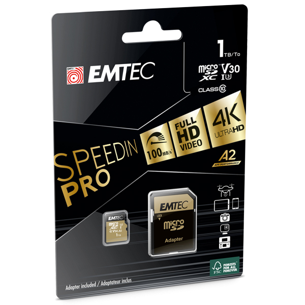 Memory Card microSD EMTEC USH-I U3 SPEEDIN PRO A2 1TB CLASS 10