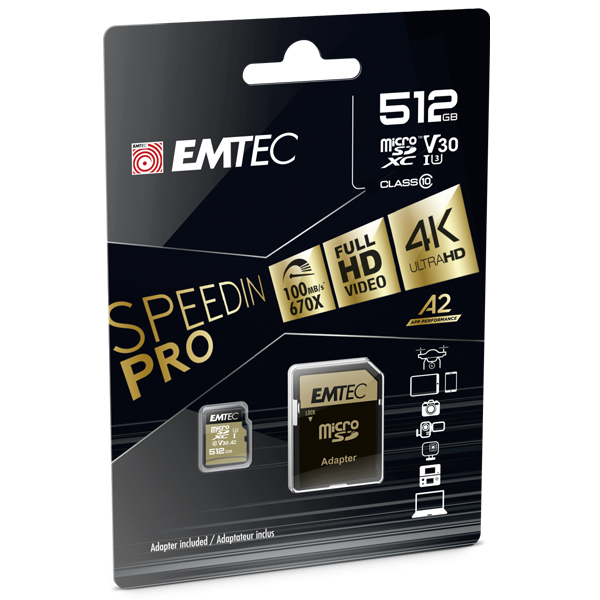 Memory Card microSD EMTEC USH-I U3 SPEEDIN PRO A2 512GB CLASS 10