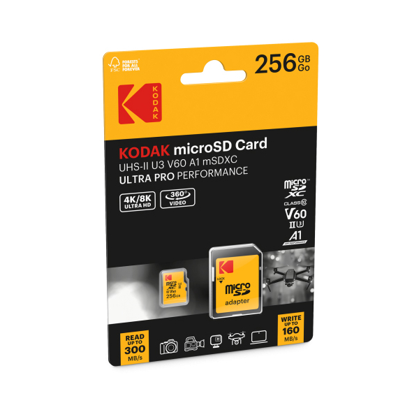 Memory Card microSD KODAK UHS-II U3 V60 PRO 256GB CLASS 10 with adapter