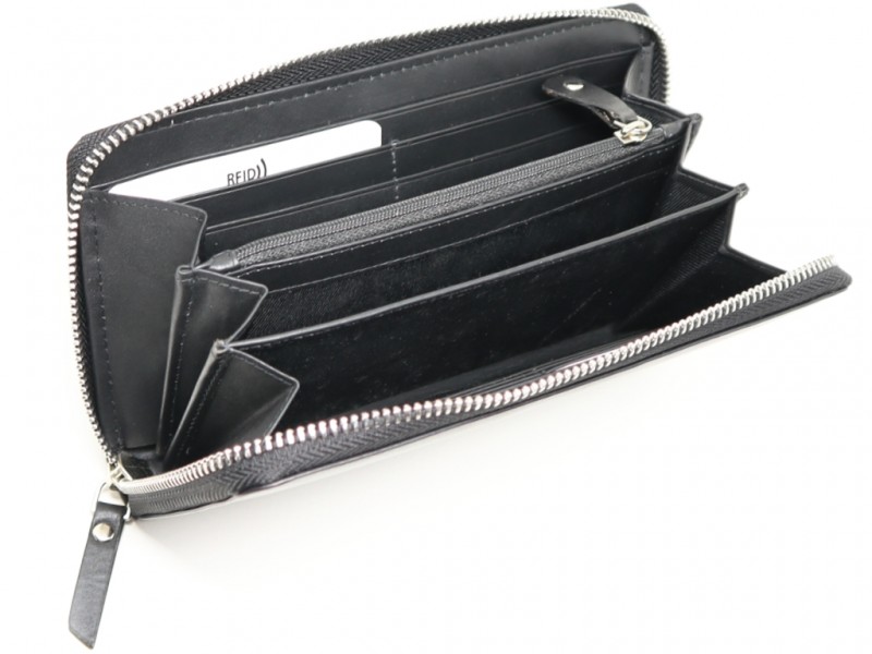 Το γυναικείο πορτοφόλι MENTZO SELENE L202 BLACK RFID ανήκει στην κατηγορία των μεγάλων πορτοφολιών, κλείνει εύκολα με φερμουάρ, διαθέτει πολλές θήκες για χαρτονομίσματα, κέρματα, κάρτες, προσωπικά αντικείμενα και θα μπορούσε να χωρέσει ακόμη και ένα μεσαίου μεγέθους κινητό. Είναι κατασκευασμένο από υψηλής ποιότητας δέρμα μοσχάρι. Ακόμη και μέσα δέρμα (φυσαρμόνικα), που σημαίνει τεράστια αντοχή στο καθημερινό άνοιξε – κλείσε, σε αντίθεση με παρόμοια πορτοφόλια που διαθέτουν ακρυλικό PU στο εσωτερικό και σύντομα αλλοιώνονται. Τα κοψίματα και οι γραμμές του ξεχωρίζουν για την αρτιότητα που οδηγεί στο τέλειο αποτέλεσμα.