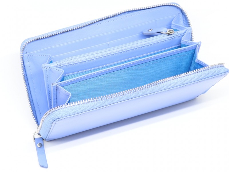 Το γυναικείο πορτοφόλι MENTZO SELENE L202 BLUE RFID ανήκει στην κατηγορία των μεγάλων πορτοφολιών, κλείνει εύκολα με φερμουάρ, διαθέτει πολλές θήκες για χαρτονομίσματα, κέρματα, κάρτες, προσωπικά αντικείμενα και θα μπορούσε να χωρέσει ακόμη και ένα μεσαίου μεγέθους κινητό. Είναι κατασκευασμένο από υψηλής ποιότητας δέρμα μοσχάρι. Ακόμη και μέσα δέρμα (φυσαρμόνικα), που σημαίνει τεράστια αντοχή στο καθημερινό άνοιξε – κλείσε, σε αντίθεση με παρόμοια πορτοφόλια που διαθέτουν ακρυλικό PU στο εσωτερικό και σύντομα αλλοιώνονται. Τα κοψίματα και οι γραμμές του ξεχωρίζουν για την αρτιότητα που οδηγεί στο τέλειο αποτέλεσμα.