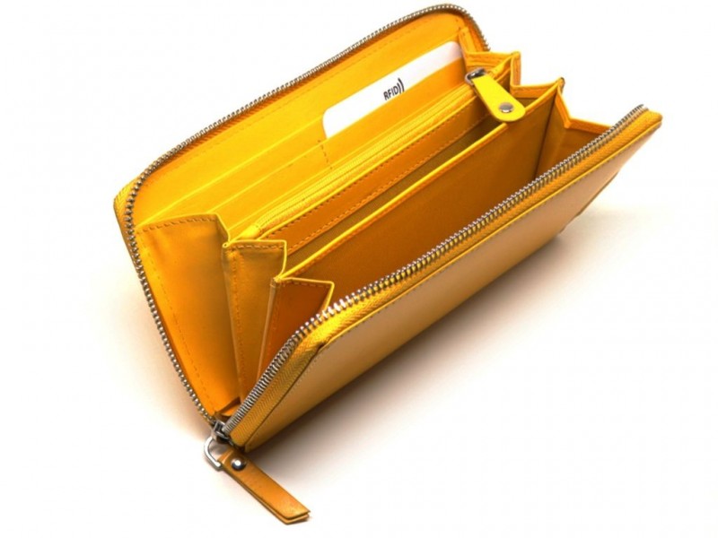 Το γυναικείο πορτοφόλι MENTZO SELENE L202 YELLOW RFID ανήκει στην κατηγορία των μεγάλων πορτοφολιών, κλείνει εύκολα με φερμουάρ, διαθέτει πολλές θήκες για χαρτονομίσματα, κέρματα, κάρτες, προσωπικά αντικείμενα και θα μπορούσε να χωρέσει ακόμη και ένα μεσαίου μεγέθους κινητό. Είναι κατασκευασμένο από υψηλής ποιότητας δέρμα μοσχάρι. Ακόμη και μέσα δέρμα (φυσαρμόνικα), που σημαίνει τεράστια αντοχή στο καθημερινό άνοιξε – κλείσε, σε αντίθεση με παρόμοια πορτοφόλια που διαθέτουν ακρυλικό PU στο εσωτερικό και σύντομα αλλοιώνονται. Τα κοψίματα και οι γραμμές του ξεχωρίζουν για την αρτιότητα που οδηγεί στο τέλειο αποτέλεσμα.
