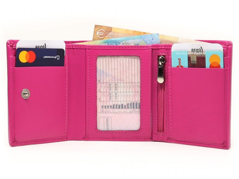 Το γυναικείο πορτοφόλι MENTZO L301 ΦΟΥΞ IRIS RFID ανήκει στην κατηγορία των μικρών πορτοφολιών, κλείνει στα τρία με κουμπί, διαθέτει δύο θήκες για χαρτονομίσματα, δίπλωμα και κάρτες. Είναι κατασκευασμένο από υψηλής ποιότητας δέρμα μοσχάρι. Ακόμη και μέσα δέρμα, που σημαίνει τεράστια αντοχή στο καθημερινό άνοιξε – κλείσε, σε αντίθεση με παρόμοια πορτοφόλια που διαθέτουν ακρυλικό PU στο εσωτερικό και σύντομα αλλοιώνονται. Τα κοψίματα και οι γραμμές του ξεχωρίζουν για την αρτιότητα που οδηγεί στο τέλειο αποτέλεσμα.