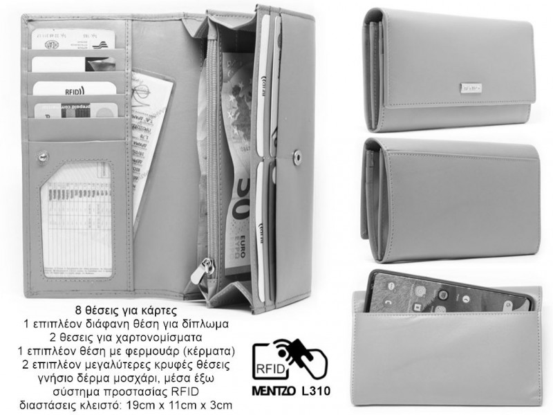 MENTZO L310 BLACK RFID ATHENA ΓΥΝΑΙΚΕΙΟ ΔΕΡΜΑΤΙΝΟ ΠΟΡΤΟΦΟΛΙ