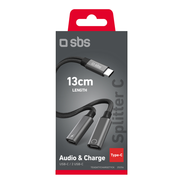 SBS ADAPTER TYPE C SPLITER TO 2 TYPE C AUDIO AND CHARGING black