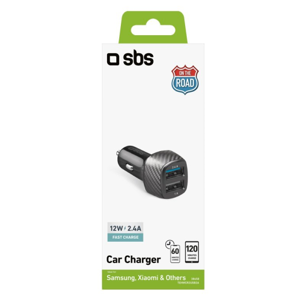 SBS CAR CHARGER 2 USB PORTS 12W 2.4A black
