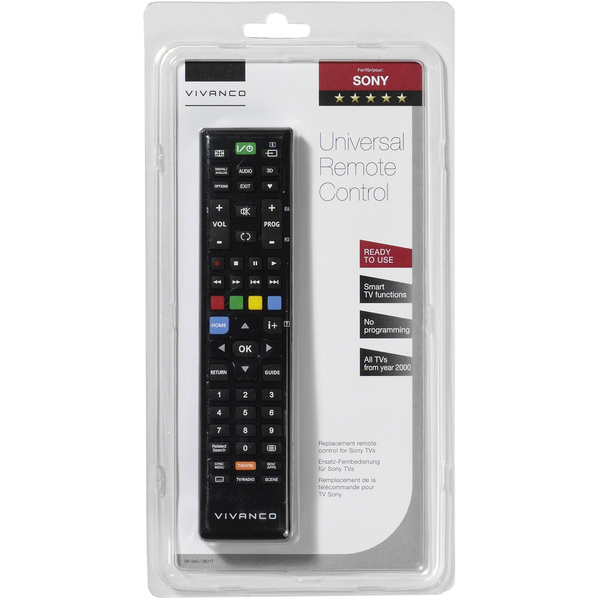 Ready to use! The replacement remote is immediately ready for use, no programming is required and all main functions are controllable. RR 240 is compatible with all TVs from year 2000. * Works immediately, no programming required * Compatible with all models since year 2000 * All the main functions * Almost all secondary functions * Smart TV ready * 54 keys