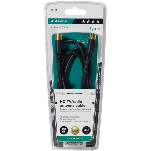 VIVANCO ANTENNA CABLE 3m COAX PLUG-COAX SOCKET FERRITE 100 dB black