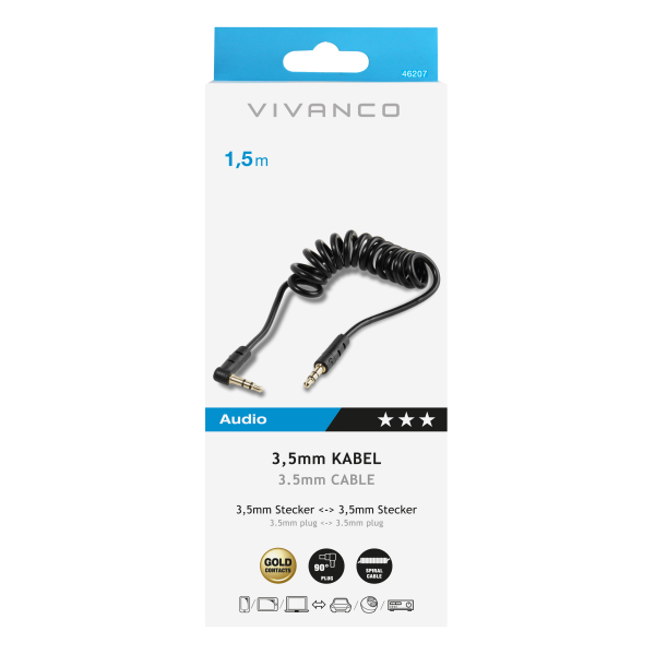 VIVANCO SPIRAL CABLE 3.5mm JACK TO 3.5mm JACK 1.5m black