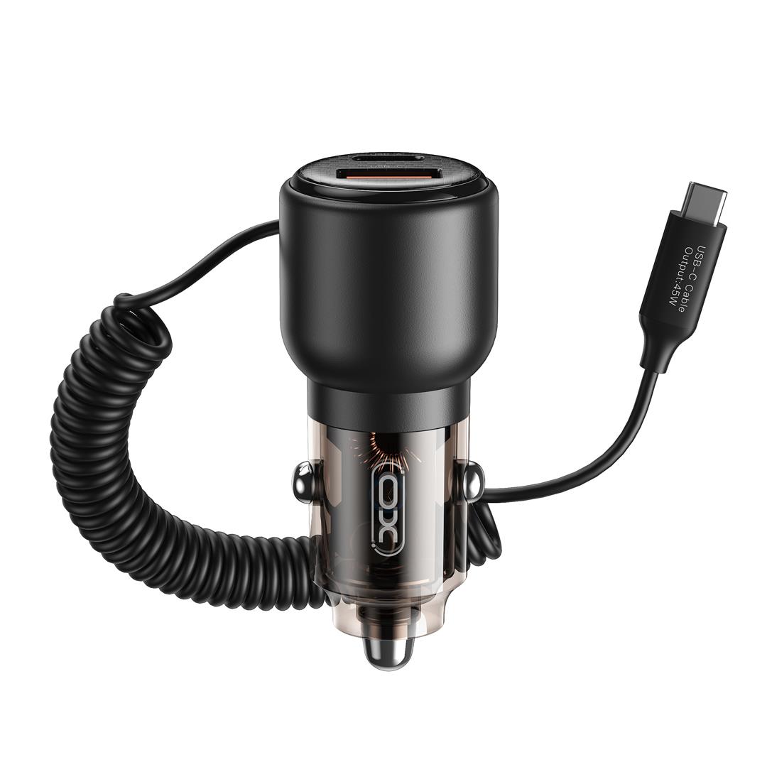 XO CC59 ΦΟΡΤΙΣΤΗΣ ΑΥΤΟΚΙΝΗΤΟΥ ΜΕ ΕΝΣΩΜΑΤΩΜΕΝΟ ΚΑΛΩΔΙΟ TYPE-C 110W , 1 ΘΥΡΑ TYPE-C + 1 ΘΥΡΑ USB, ΔΙΑΦΑΝΟΣ