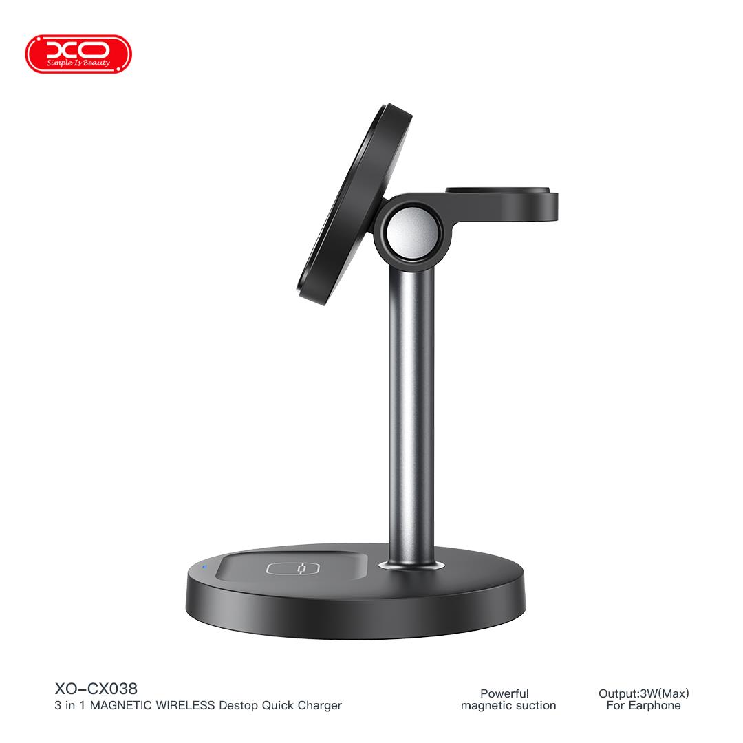 XO CX038 DESKTOP HOLDER 15W ΑΣΥΡΜΑΤΟΣ ΦΟΡΤΙΣΤΗΣ 3-IN-1, ΜΑΥΡΟΣ