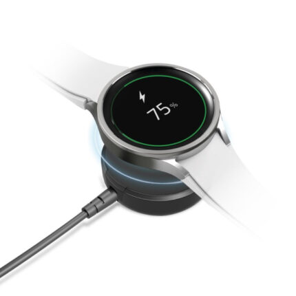 This charging cable for Samsung Watch easily connects to a mains charger, a power bank or a car charger with a USB-C port. Place the body of your Samsung smartwatch on the base and charging will start automatically in wireless mode with 5W of power.