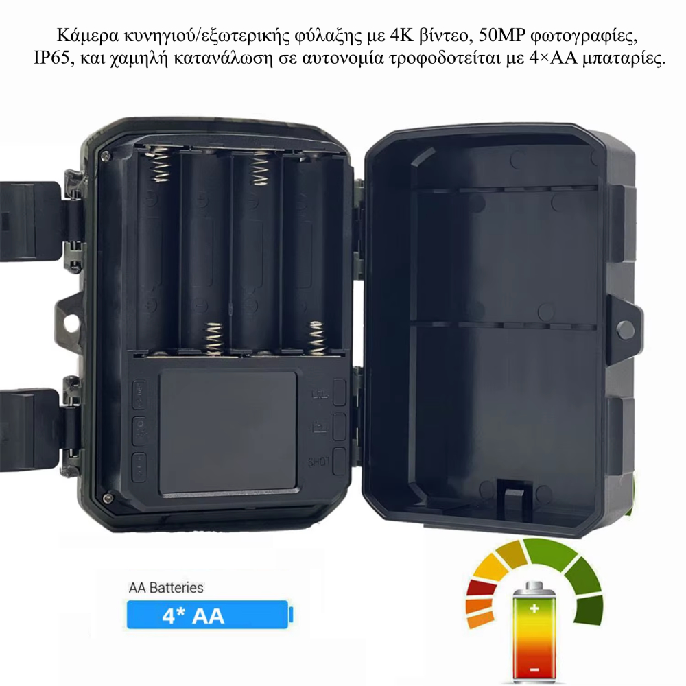 Suntek HC-801Plus-li με Μπαταρία 5000mAh 4G/2K/30MP/Αποστολή βίντεο-φωτογραφιών μέσω εφαρμογής Η νέα κάμερα της Suntek HC-801Plus είναι πολύ πιο εύκολη στη χρήση από άλλες 4G κάμερες της εταιρείας. Ο λόγος είναι πως δεν χρειάζεται πλέον να προβείτε σε καμία διαδικασία ρύθμισης για την αποστολή των καταγραφών στο email σας, αφού θα λαμβάνετε όλες τις ειδοποιήσεις (φωτογραφίες και βίντεο) μέσω της εφαρμογής SuntekApp. Ο τρόπος σύζευξης του κινητού με την κάμερα είναι εύκολος και γρήγορος. Επιπλέον οι φωτογραφίες και τα βίντεο κατά την ανίχνευση κίνησης θα σας αποστέλλονται πιο γρήγορα, συνεπώς η φύλαξη του χώρου σας θα πραγματοποιείται καλύτερα και με μεγαλύτερη ασφάλεια. Με την Suntek 801Plus θα μπορείτε πλέον να έχετε στα χέρια σας καταγραφές εξαιρετικής ποιότητας αφού ο αναβαθμισμένος φακός της επιτρέπει λήψεις σε ανάλυση έως και 2K και 30 καρέ το δευτερόλεπτο για απόλυτη ομαλότητα στην κίνηση! Αυτά τα χαρακτηριστικά, σε συνδυασμό με την πιστοποίηση αδιαβροχοποίησης της καθιστούν την Suntek 801Plus την απολύτως κατάλληλη για τοποθέτηση σε ανοιχτούς χώρους χωρίς πρόσβαση σε WiFi όπως οικόπεδα, αγροκτήματα και μελισσοκομεία, ή ακόμα και για χρήση από κυνηγούς! Υψηλής Ποιότητας Φωτογραφίες και Βίντεο Η Suntek HC-804Α καταγράφει φωτογραφίες 24 megapixels και FULL HD 2.7K βίντεο για κρυστάλλινη και ζωντανή εικόνα τη μέρα και ασπρόμαυρη τη νύχτα. Ταχύτατη Ανίχνευση Κίνησης Η κάμερα περιέχει 3 αισθητήρες κίνησης που βλέπουν σε εύρος 120°, ανιχνεύουν σε εύρος 90° και πυροδοτούν την εγγραφή σε μόλις 0.3 δευτερόλεπτα. Αναβαθμισμένη Νυχτερινή Λήψη Η HC-804Α έρχεται με 32 αναβαθμισμένα και πλήρως αόρατα IR Leds που δείχνουν εικόνα έως και 20 μέτρα μακριά από την κάμερα. Αδιαβροχοποίηση IP66 και Οθόνη TFT Η οθόνη TFT 2'' επιστρέπει την παρακολούθηση των καταγραφών σας πάνω στην κάμερα και η αδιαβροχοποίηση IP66 την κάνει άτρωτη ακόμη και στις πιο δύσκολες καιρικές συνθήκες. Πολλαπλές Λειτουργίες H Suntek HC-804A έχει 3 λειτουργίες εγγραφής(φωτογραφίες, βίντεο, φωτογραφίες και βίντεο) και υποστηρίζει timelapse, ατελείωτες εγγραφές, καταγραφή σε συγκεκριμένα χρονικά διαστήματα και κωδικούς προστασίας. Αποκτήστε τώρα την Suntek HC-804A Κάμερα για Μελισσοκόμους και Αγροκτήματα - Ανίχνευση Κίνησης (24MP/2.7Κ/32IRLED/90°) και βρείτε ένα καινούριο σύντροφο στο χόμπυ σας ή ένα εργαλείο στη δουλειά σας! Χαρακτηριστικά: Αισθητήρας: 5MP CMOS Φακός: FOV=90 Λειτουργίες: Φωτογραφίες, βίντεο, φωτογραφίες και βίντεο, timelapse Απόσταση Νυχτερινής Λήψης: 20 μέτρα IR Leds: 32 Ανάλυση Φωτογραφιών: 24/16/12/8/5/3/1MP Πολλαπλές Φωτογραφίες: 1/3/6/9 Ανάλυση Βίντεο: 2.7K,1080P, 720P, WVGA Κάρτα Μνήμης: Έως 256GB Τροφοδοσία: 8xAA 1.5V ή εξωτερική τροφοδοσία 9V/1A DC Αδιαβροχοποίηση: IP66 Διαστάσεις: 17 × 13 × 11 cm Βάρος: 1 kg Περιεχόμενα: 1x Κάμερα 1x Manual 1x Strap 1x USB καλώδιο Η Suntek HC-808A Κάμερα για Μελισσοκόμους και Αγροκτήματα - Ανίχνευση Κίνησης (24MP/2.7Κ/32IRLED/IP66) είναι εδώ για να προσφέρει ασφάλεια στο χώρο σας ή να αποτελέσει ένα σημαντικό εργαλείο στο κυνήγι ή τη φωτογράφιση και βιντεοσκόπηση της ζώων. 【Φωτογραφίες και βίντεο υψηλής ποιότητας】- Η Suntek HC-808A αποτυπώνει κρυστάλλινες εικόνες με ανάλυση 24 MP και βίντεο full HD 1080P με εξαιρετικά καθαρό ήχο σε ζωντανά χρώματα την ημέρα και ασπρόμαυρες λήψεις τη νύχτα ώστε να μπορείτε εύκολα να εντοπίσετε κάθε κινητικότητα στον χώρο σας. 【Ανάλυση 1080P & 24MP καθαρότερη φωτογραφία】- Η HC-808A τραβάει βίντεο 1080P με αυτόματο αισθητήρα ημέρας/νύχτας, καταγράφοντας τον χώρο σας μέσω καθαρών εικόνων και βίντεο.